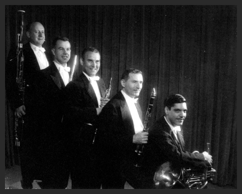 The quintet played Washington from 1963-65. Venues played are uncertain but probably included Lisner auditorium in 1964. Ernest Harrison, at one point, was principal oboe of the National Symphony Orchestra, and may have moved away from the DC area. Further information is welcomed.